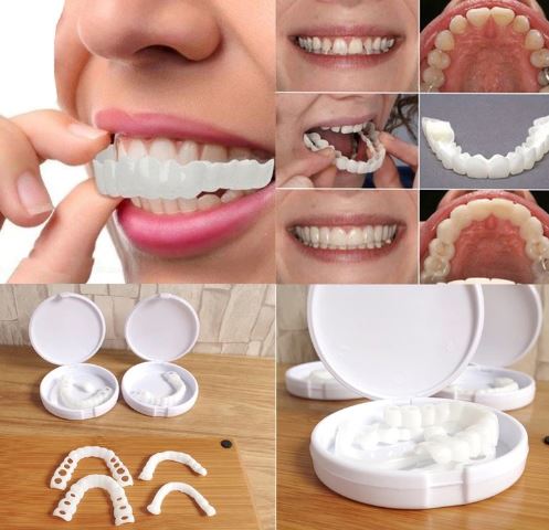 Carillas estéticas a presión, de silicona flexible, ideales para mejorar tu sonrisa al instante.